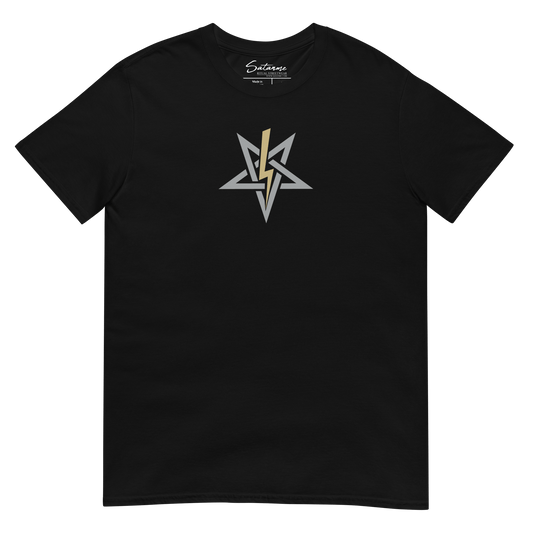 Anton LaVey Sigil Shirt - BlackFront and center sits the Sigil of Anton LaVey — the lightning bolt through the pentagram, the symbol of power, intellect, and mastery. Rendered in sharp metallic tones against jet black, a stark contrast.Crafted from premium ring-spun cotton, this shirt delivers a soft, lived-in...
