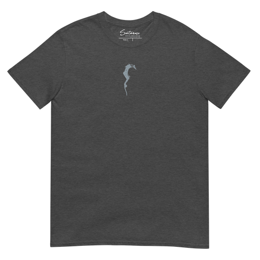 Chapter Dragon Embroidered Shirt - BlackMinimalist in form. Maximalist in meaning.A whisper of Anton LaVey’s original hand-drawn Dragon design, which appears at the head of every chapter of The Satanic Bible, now quietly stitched in grey thread over your heart. Embroidered, not printed, because some things deserve permanence. Crafted...