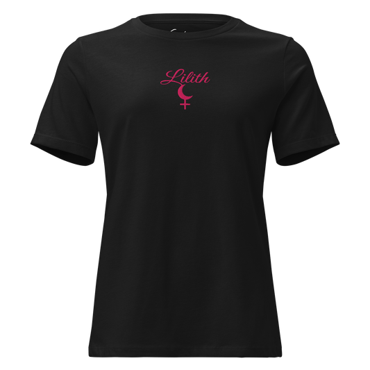 Dark Moon Lilith Embroidered Women's Shirt - BlackAcross the chest: the name Lilith in bold magenta script. Below it, the Dark Moon sigil, her mark. Not printed. Embroidered. Threaded with permanence, like her defiance. Like yours.Lilith isn’t just some myth, whispered from patriarchal pulpits. She’s the first to walk away. The...