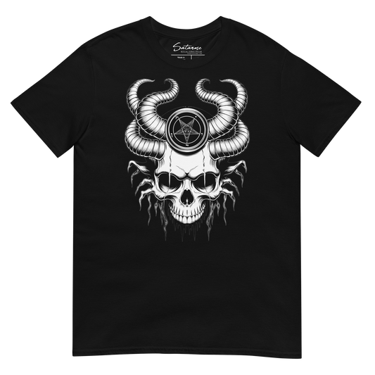 Infernal Crown Shirt - BlackThis is the shirt your mom warned you about. You should’ve listened.The Infernal Crown slams together grim iconography with hardline aesthetics:A bleached-out, wide-grinned skull with heavy curled horns, oozing menace from every line. Crowned dead-center with the Sigil of Baphomet—the seal of defiance, reason,...