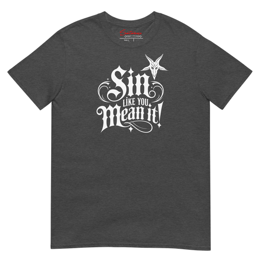 Sin Like You Mean It Shirt - BlackPrinted on jet-black, ring-spun cotton for a luxuriously soft feel with a rebellious edge. The gothic scrollwork screams with playful desire. “Sin Like You Mean It”, dare to live without compromise, a reminder that indulgence, when chosen with intent, is sacred when it's sincere....