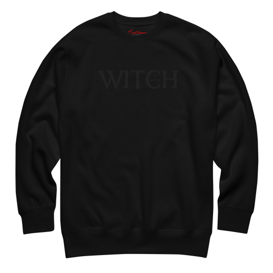 WITCH Embroidered Sweatshirt - Black"Let your status as a Witch be known" - Anton LaVey This structured, fleece-lined sweatshirt is cut in a relaxed silhouette with a ribbed crew neck and finely finished hem—off-duty luxury, refined to its essentials. Embroidered across the chest, the word WITCH stands subtle,...