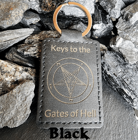 The Infernal Names KeychainThis stylish yet minimalistic double sided keychain is the perfect commandment for the Keys to your Gates of Hell! Adorned with the name of your choice of the Devil's of Hell, the names listed are the names of the Gods and Goddesses called upon...