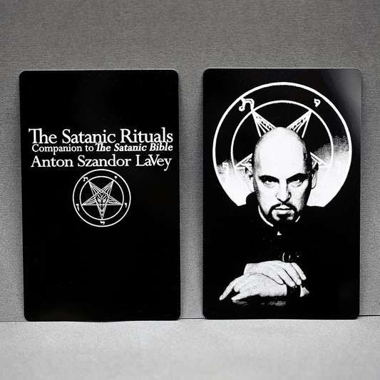 The Satanic Scriptures Bookmark - BlackThe Satanic Scriptures Bookmarks are made from anodized aluminum allowing for a large range of color options. They measure about 2.2 inches wide by 3.4 inches tall and are thick enough to not bend easily but yet are very lite weight. Available in an array of...