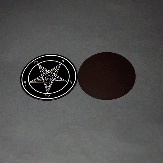 Evening Black Baphomet MagnetThis flat Magnet is 3 inches in diameter and in our standard Evening Black Baphomet design. Perfect for showing off your Satanic Pride just about anywhere there is metal!