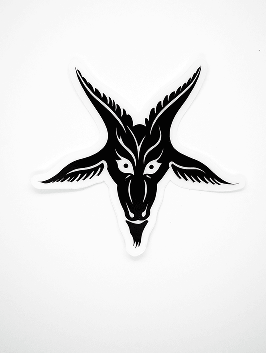 Black Baphy StickerThis Black (Baphy) Baphomet Sticker (Just the Goats Head in Black) is 3 inches and is done in a style that has just the Goats Head cut out. It allows for interesting placement and a subtle statement!