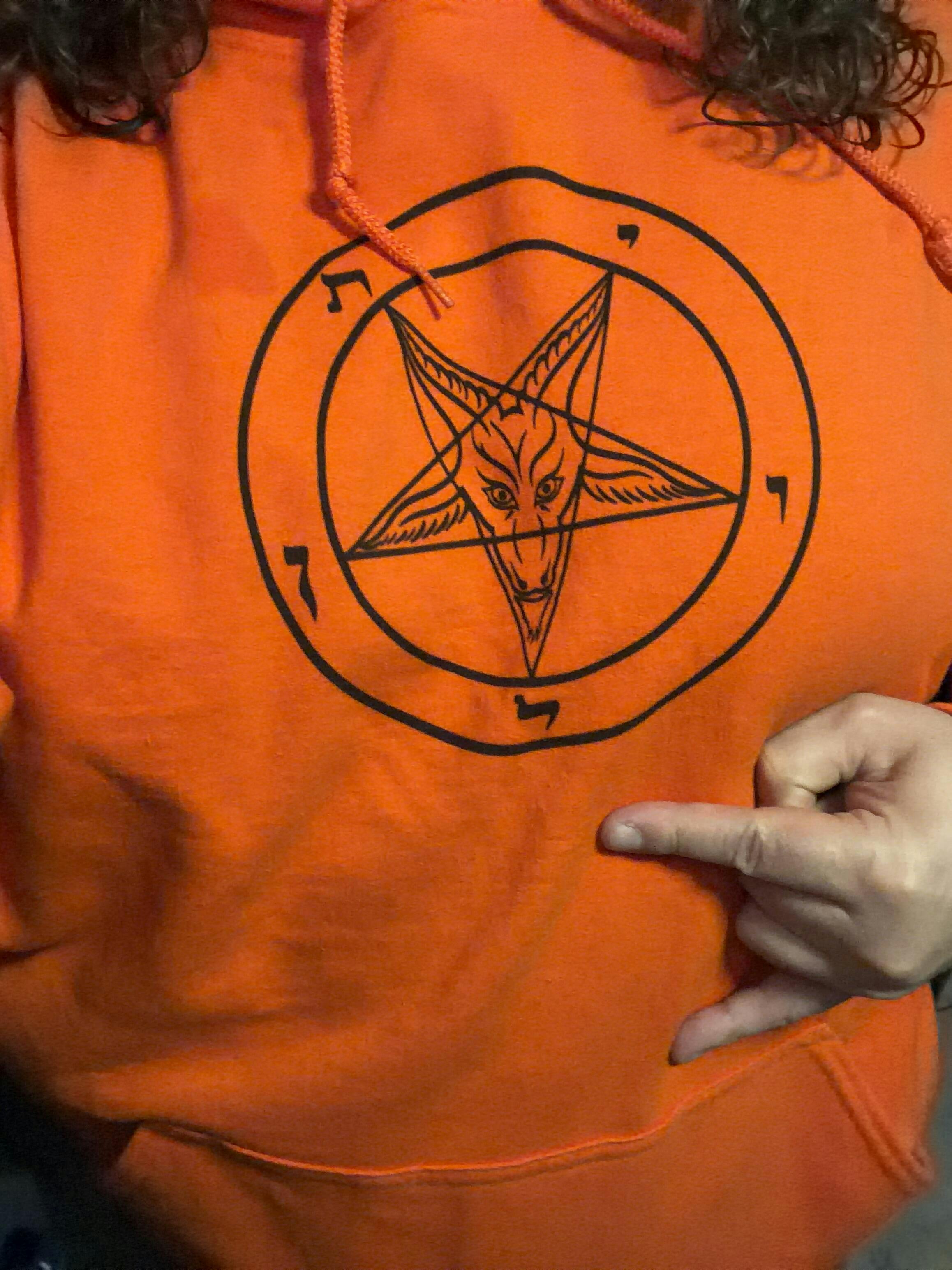 This hoodie was conjured for one reason: to mark All Hallows Eve in its true form. The Baphomet Sigil sits front and center, black as midnight, a beacon for those who know this night is more than candy and cliché. It’s the veil thinning. The energy rising. The Limited Edition Evil Pumpkin Badge tangled in shadowy vines with Brimstone and Snake, slithering out of the garden of Eden on the left sleeve.