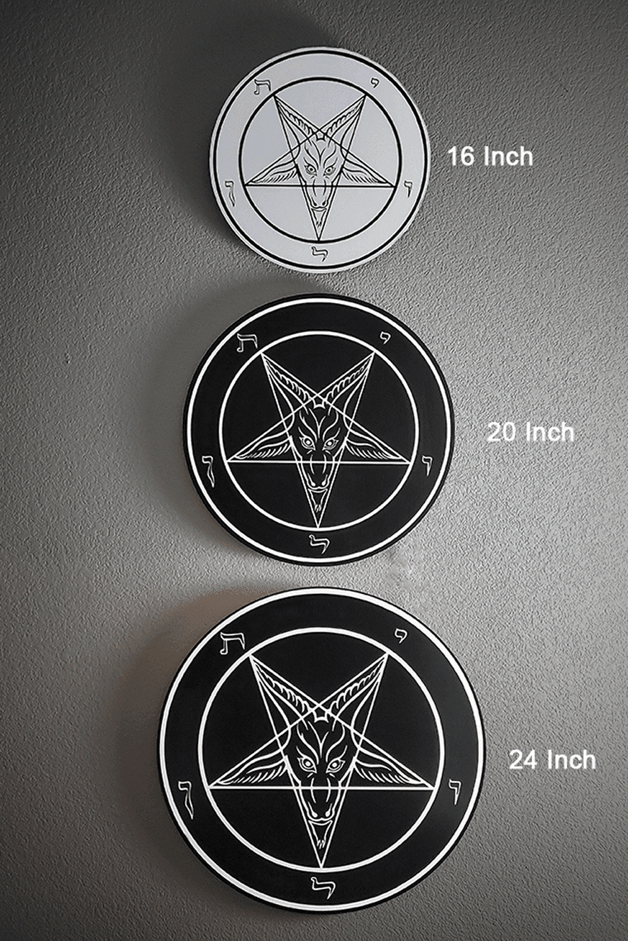 This Sigil of Baphomet Wall Plaque comes in Eight sizes (5", 8", 12", 16", 20", 24", 30", and 40"), personalized for everyone's needs.