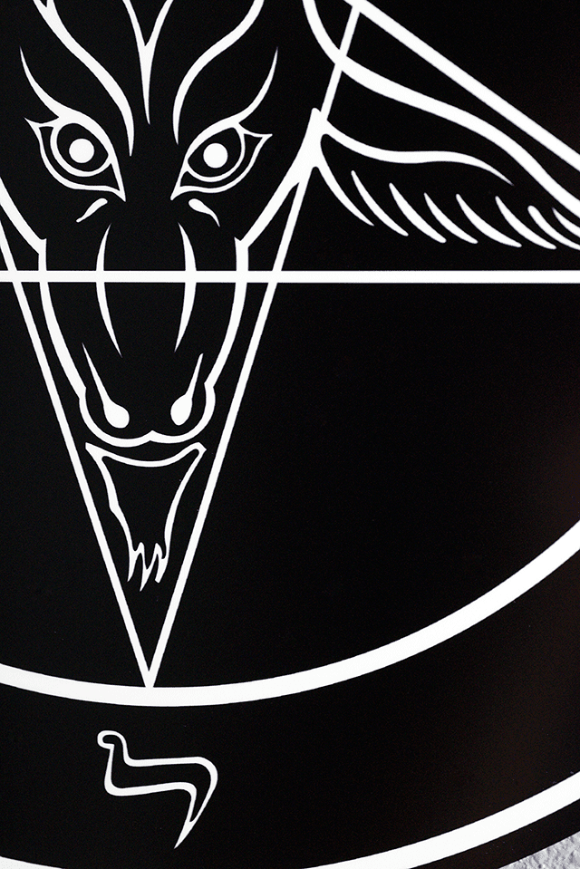 The Officially Licensed Church of Satan Sigil of Baphomet is infused in amazingly vibrant high-definition on to specially treated ChromaLuxe aluminum metal in a Satin Finish for reduced reflection. A large Float Mount Hanger is attached to the back which "floats" the Baphomet a half inch off the wall when hung. The "floating" gives the Baphomet a magical look and allows for LED lighting to be applied behind it for a ghostly glow.